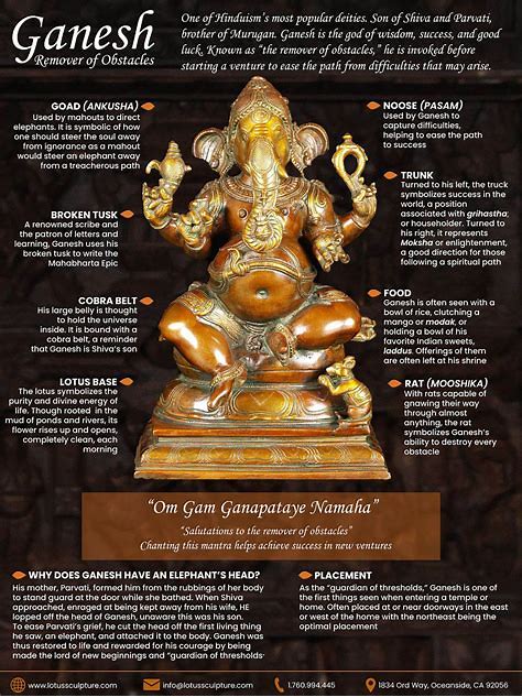 Big Head: Ganesha’s big head is a symbol of thinking big. One should have broader thinking and never dwell on the past2.